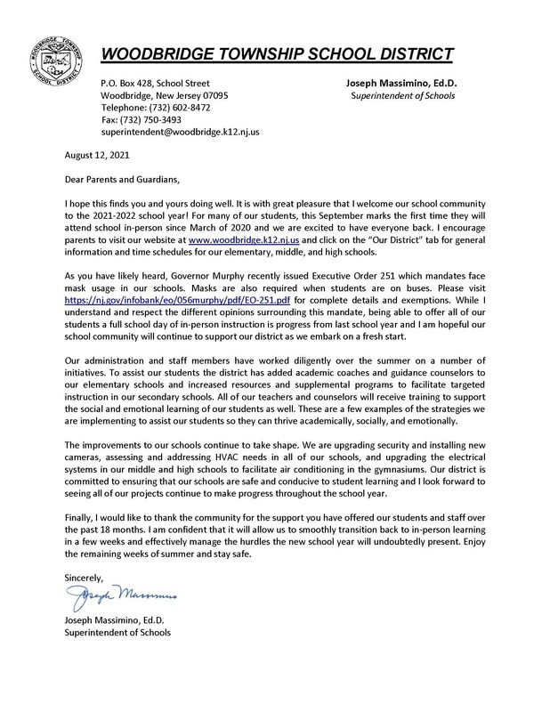 Please take a moment to review the following message from Dr. Joseph Massimino, Superintendent of Schools: