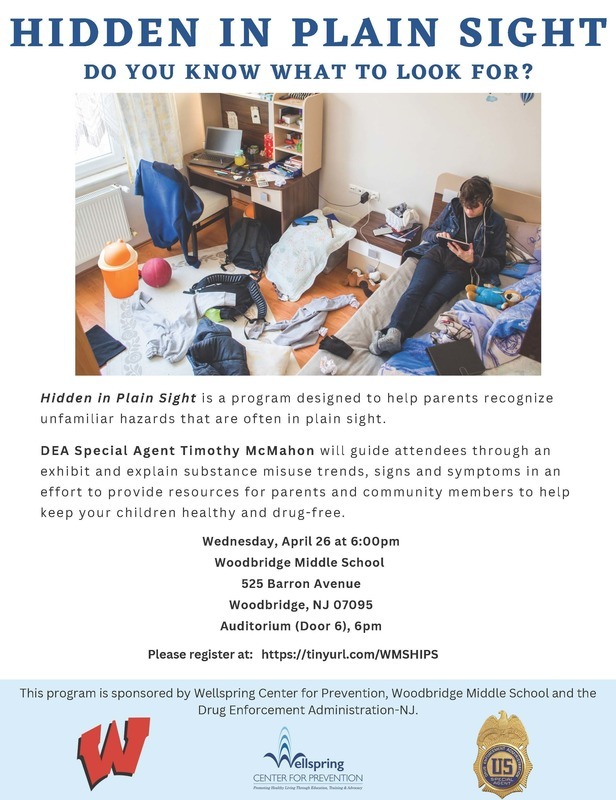 A program designed to help parents recognize unfamiliar hazards that are often in plain sight. DEA Special Agent Timothy McMahon will guide attendees through an exhibit and explain substance misuse trends, signs and symptoms in an effort to provide resources to parents and community members to keep children healthy and drug-free.
